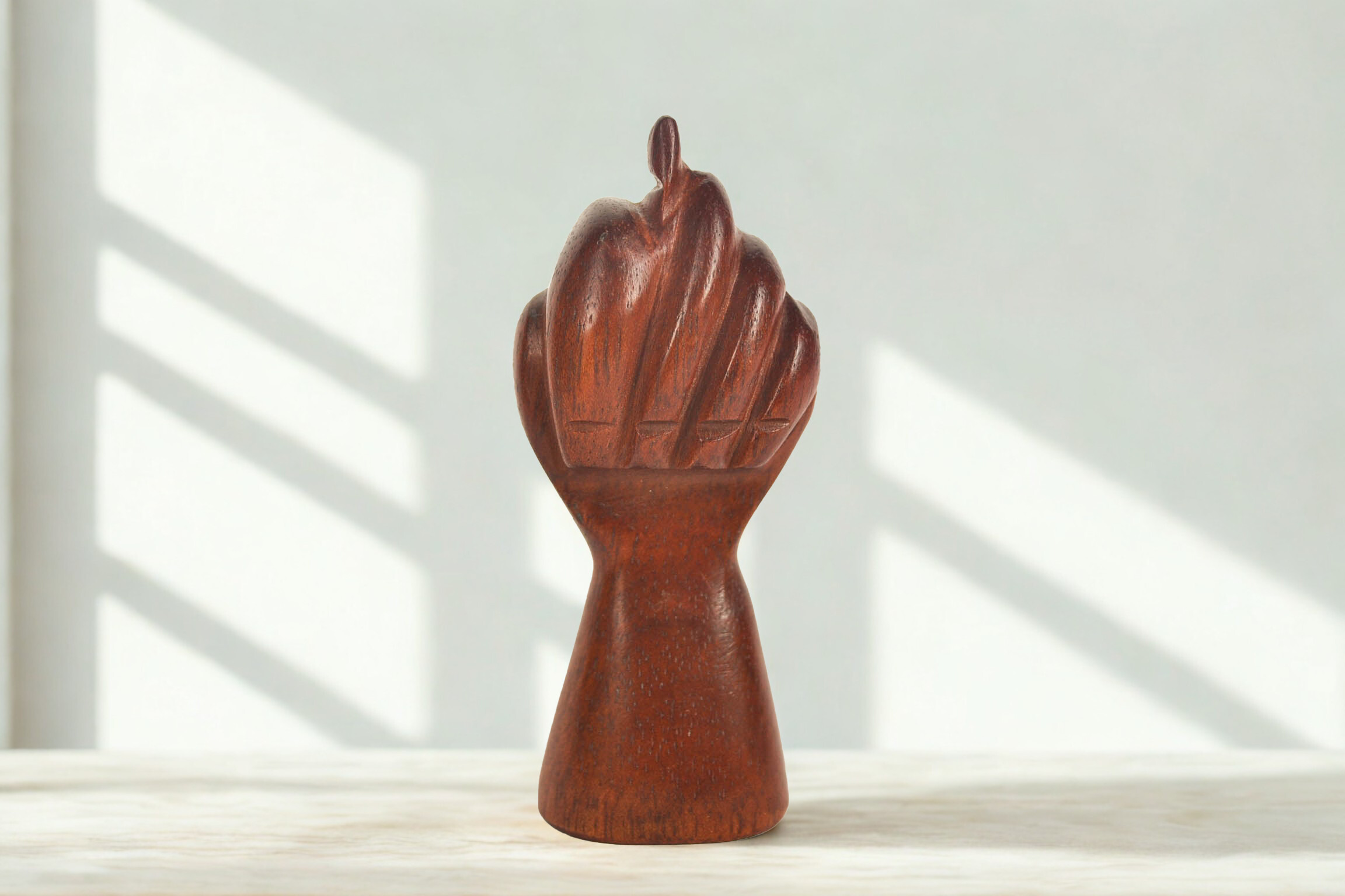 Figa de Madeira M feita em Pau Brasil, com acabamento polido.