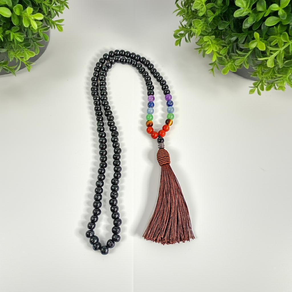 Este japamala não é apenas uma ferramenta de meditação, mas também um acessório que carrega consigo a força dos elementos naturais, ajudando você a se manter em sintonia com seu propósito e sua jornada espiritual. Seu design elegante e versátil faz com que ele também seja uma joia linda para o dia a dia, refletindo equilíbrio e tranquilidade.