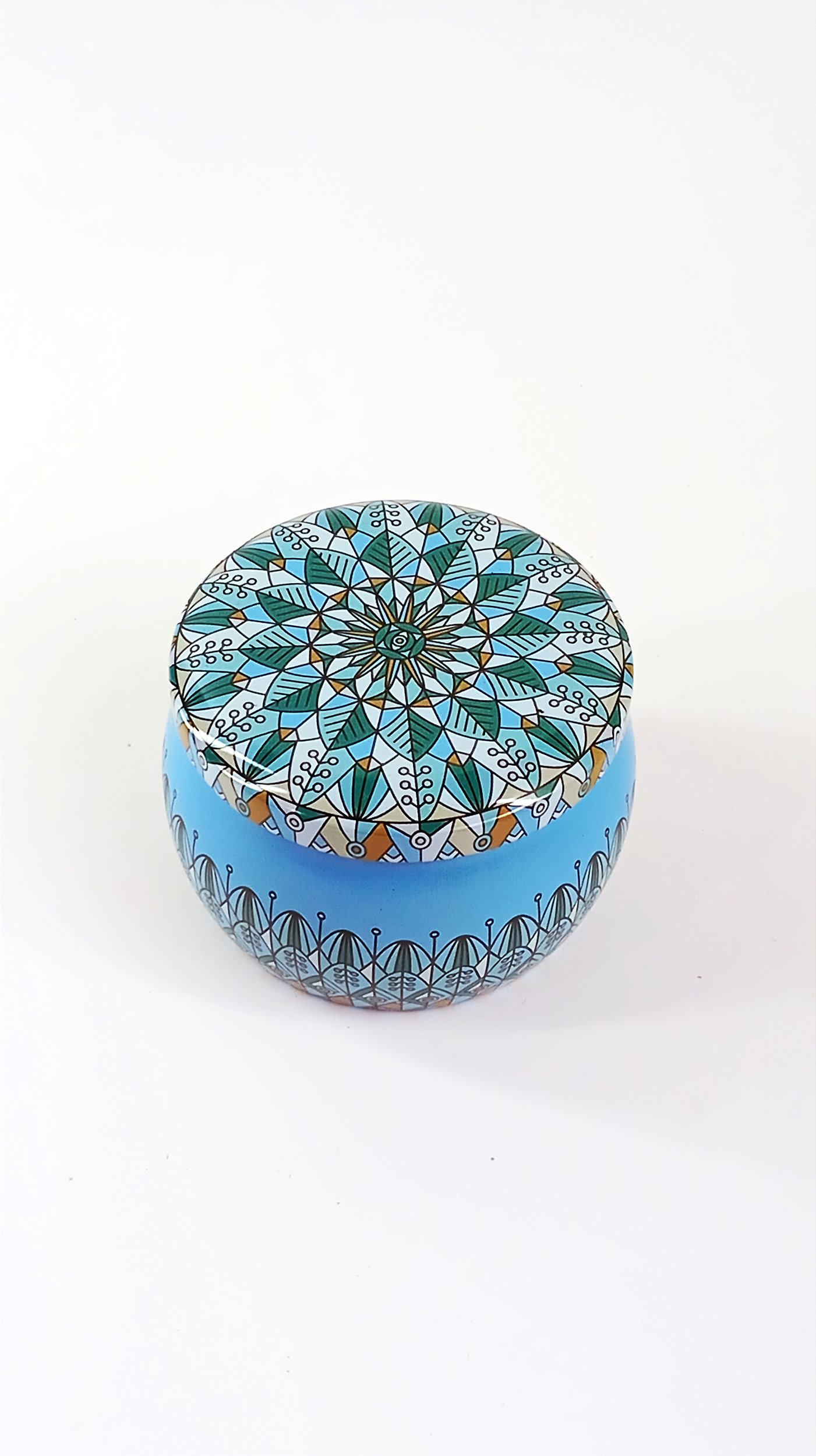 Com design inspirado nas mandalas sagradas, esta lata é Ideal para guardar cristais, ervas, incensos, anéis ou pequenos tesouros do seu altar, ela une beleza mística e praticidade no dia a dia.