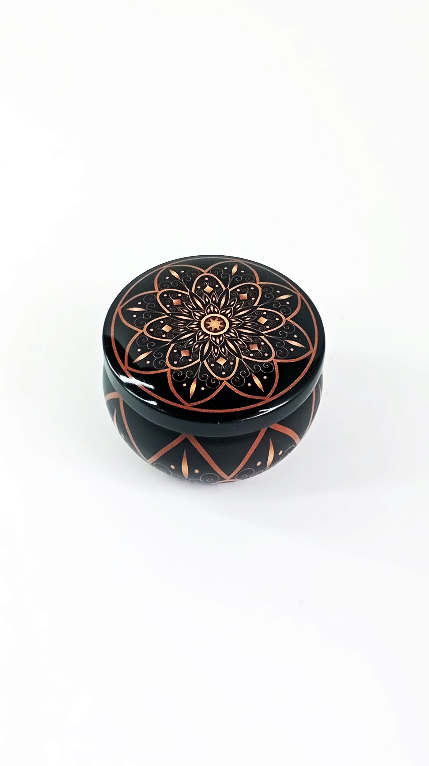 Com design inspirado nas mandalas sagradas, esta lata é Ideal para guardar cristais, ervas, incensos, anéis ou pequenos tesouros do seu altar, ela une beleza mística e praticidade no dia a dia.
