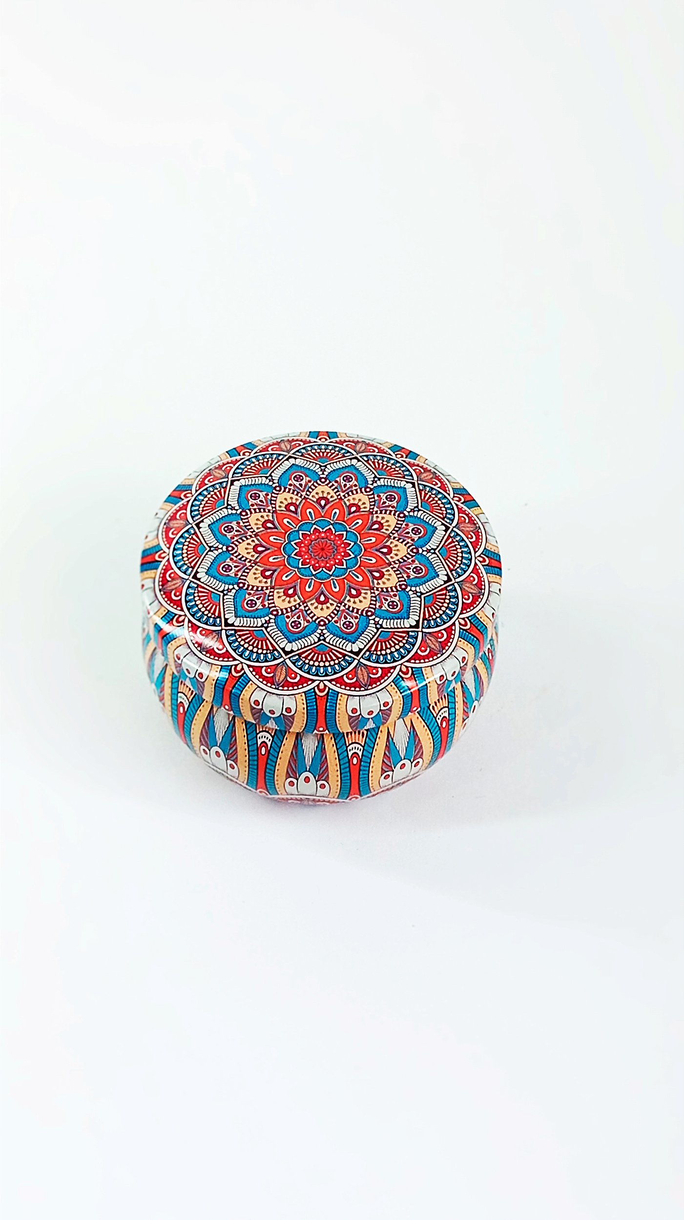 Com design inspirado nas mandalas sagradas, esta lata é Ideal para guardar cristais, ervas, incensos, anéis ou pequenos tesouros do seu altar, ela une beleza mística e praticidade no dia a dia.