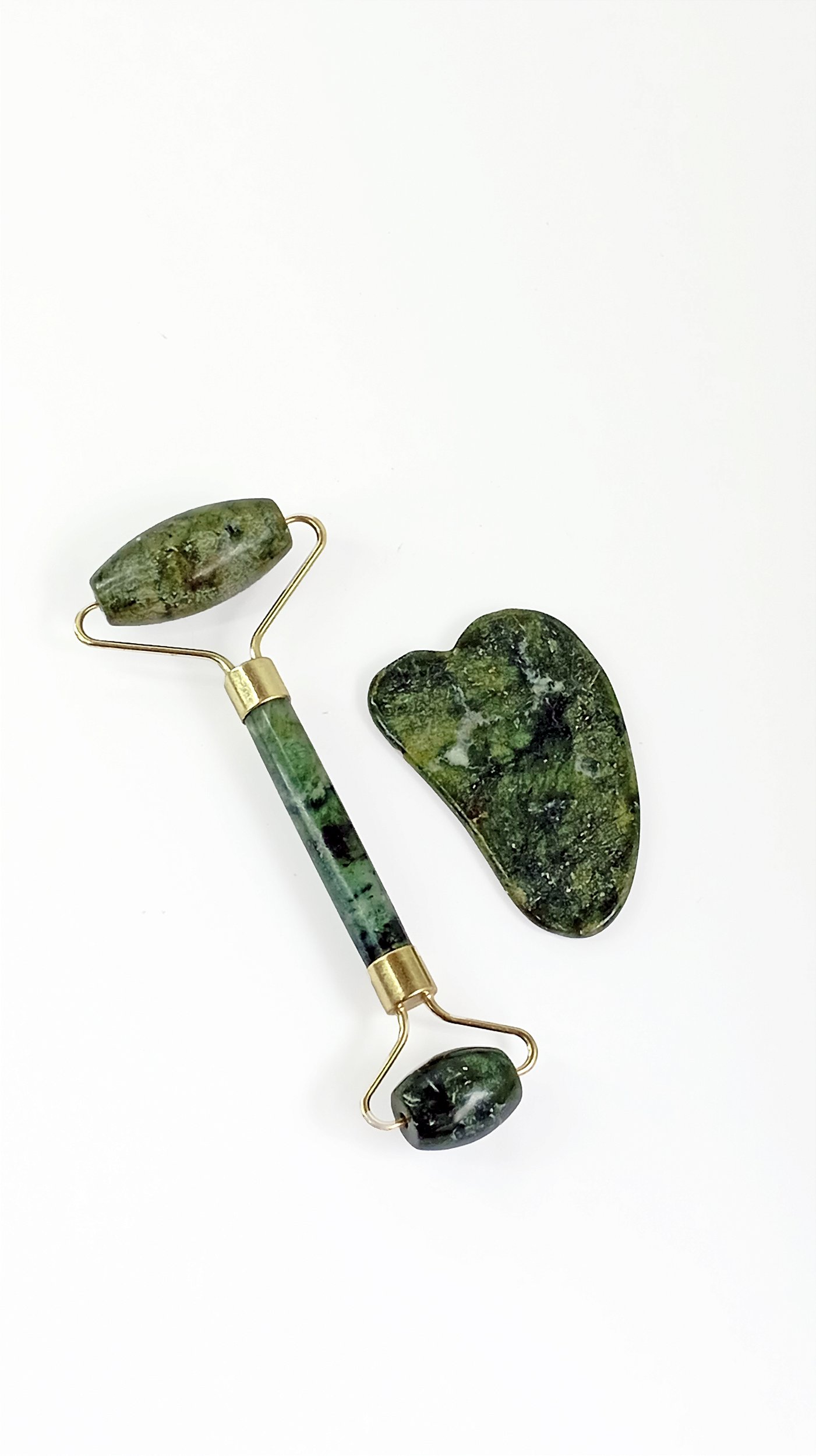 Kit Massageador Facial Rolinho – Jade Verde Natural
