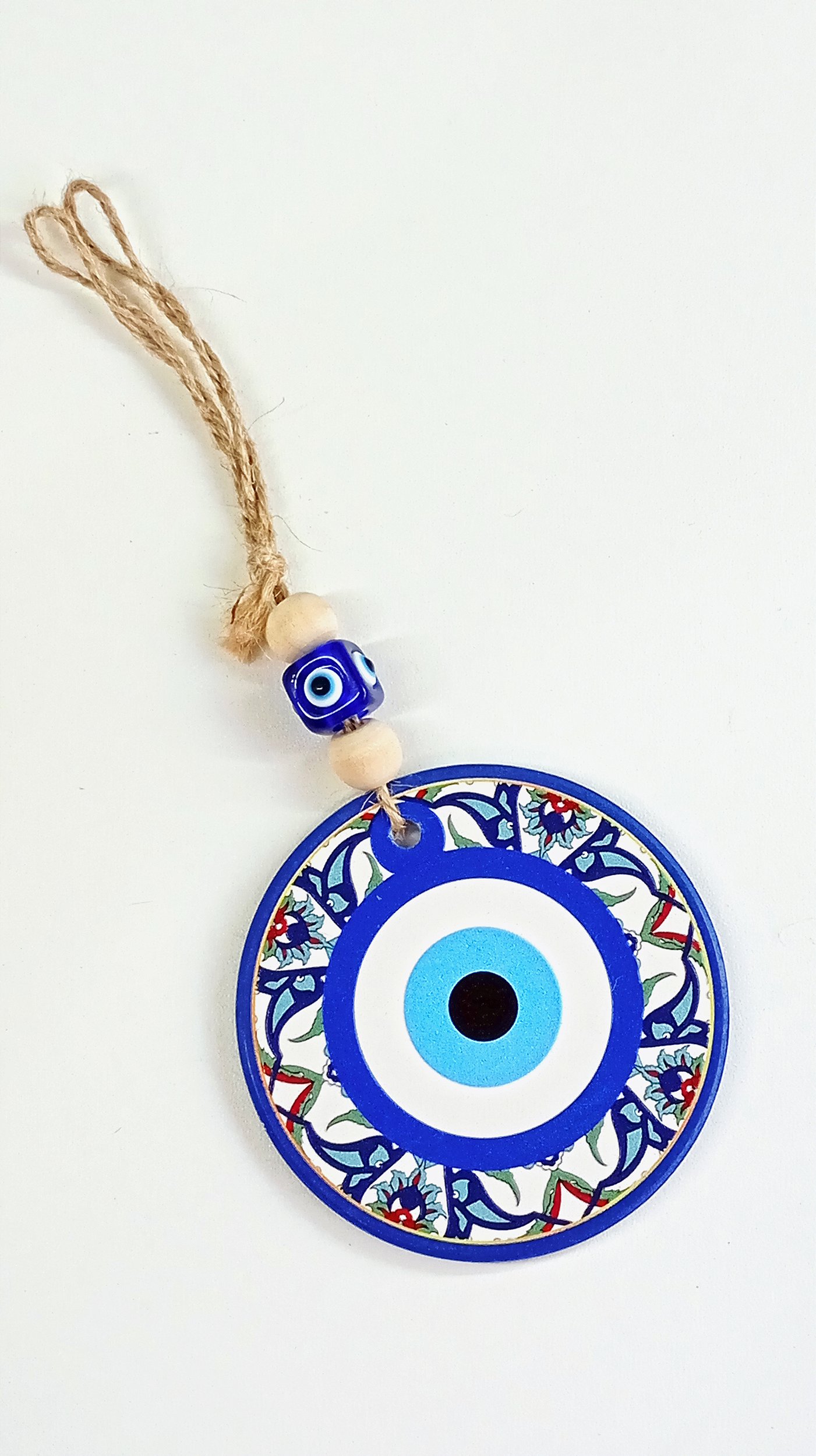 Este amuleto traz a força protetora do Olho Grego, símbolo tradicional contra inveja e energias negativas, combinado com um delicado detalhe floral em sua borda, que remete à beleza, renovação e harmonia.