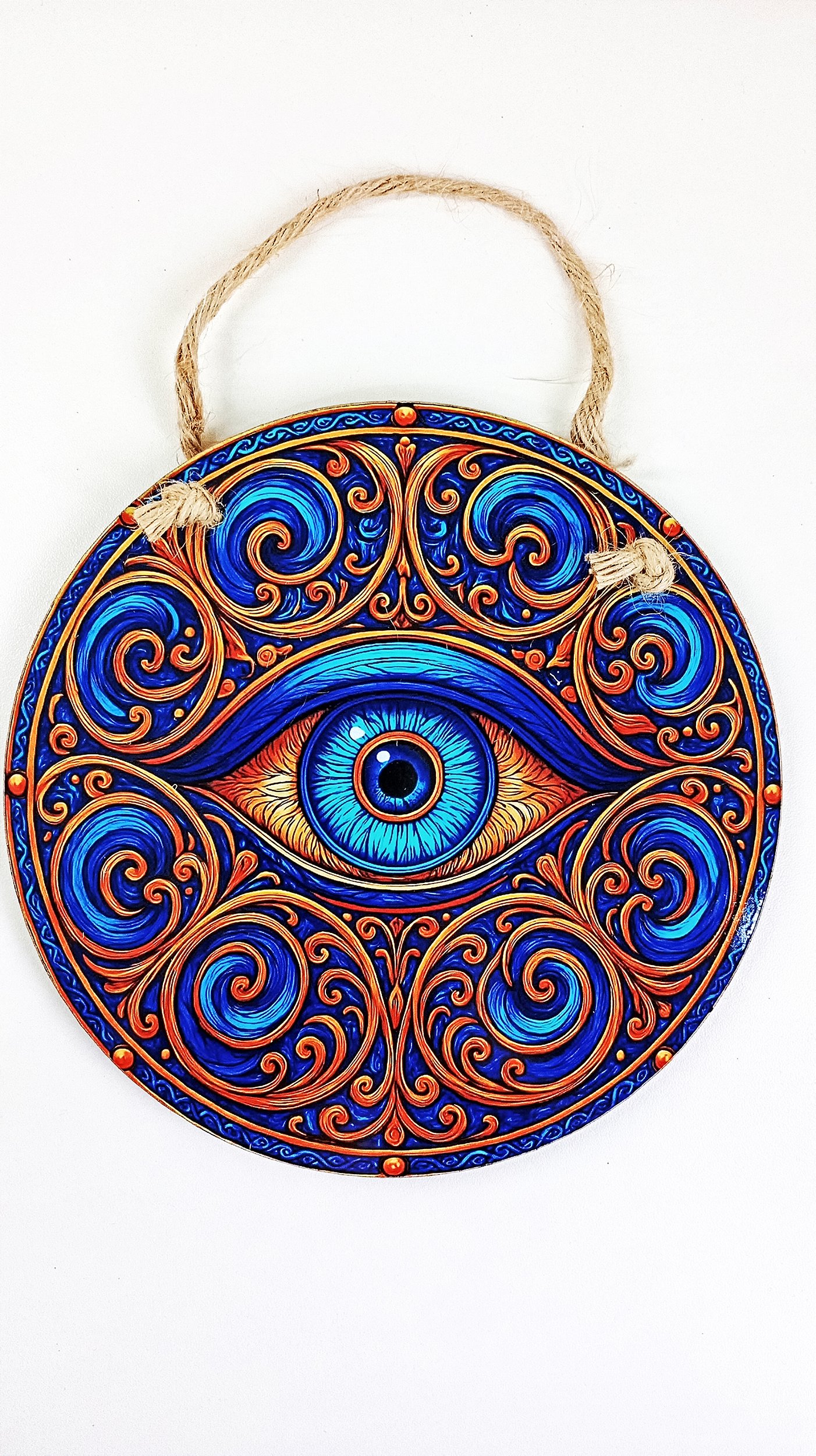 Leve para o seu espaço a força mística do Olho Grego, símbolo ancestral de proteção contra más energias e inveja. Esta placa decorativa é feita em cores vibrantes de azul e dourado, com detalhes artísticos que transmitem movimento e poder. Ideal para pendurar em portas, salas, escritórios ou altares, ela harmoniza o ambiente e atrai boas vibrações.
