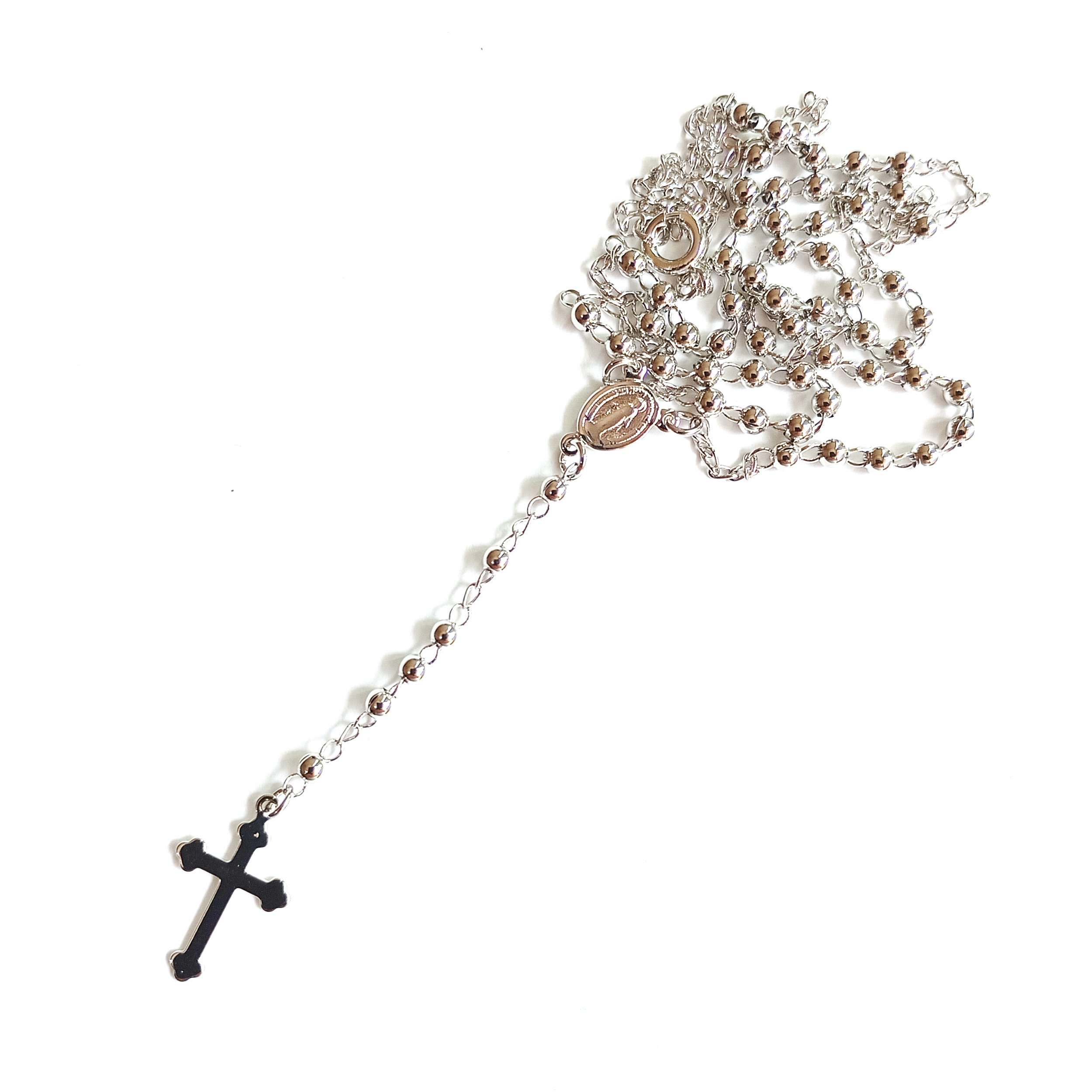 Terço contas de metal prateado