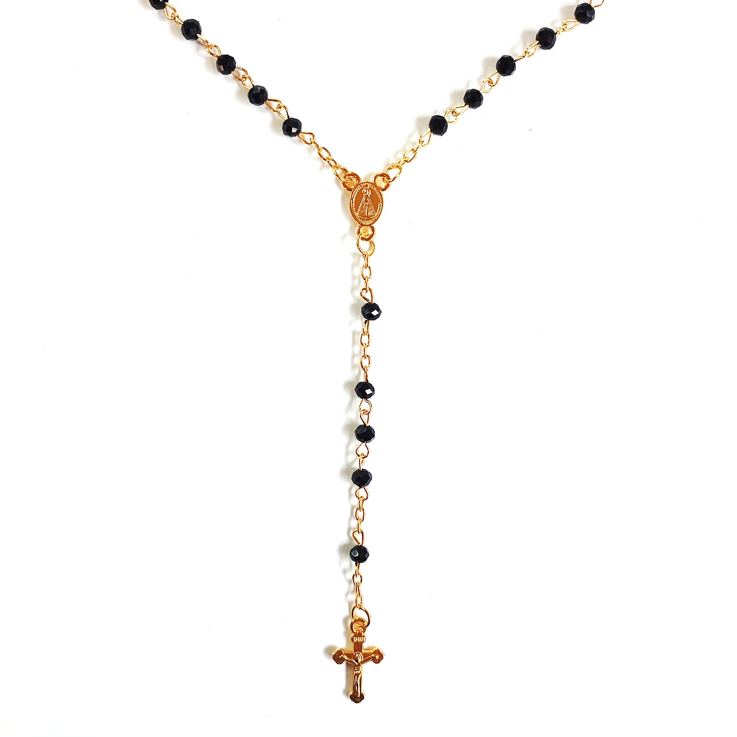 Terço Nossa Senhora Aparecida Dourado com Contas Pretas